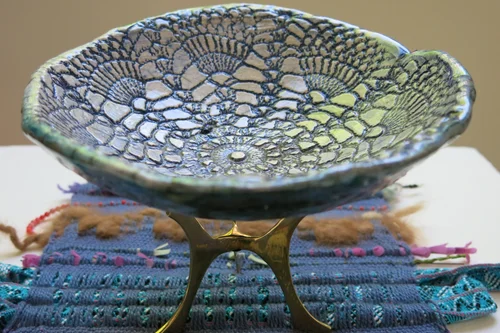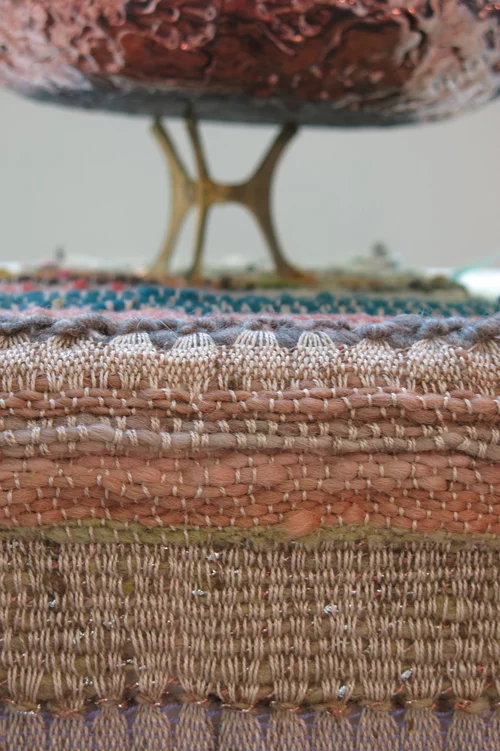 This installation reflects and directly references the symbology of Renaissance mystics and alchemists, 20th century Transcendentalists, and the ancient Cycladic occult; to wonder upon the the Microcosm of human life, the Macrocosm of the universe, and how these two worlds might intersect within the body. My exploration takes the form of ceramic totems and mandalas of fire, water, earth and air; suns, moons, stars and clouds; and are alight with metallics of gold, silver, copper and bronze. Placed against backdrops of patterned paintings, handmade papers and textiles, these sculptures take on the quality of altarpieces. Small precursor drawings, prints and papers accompany this work.