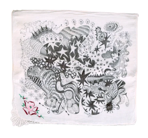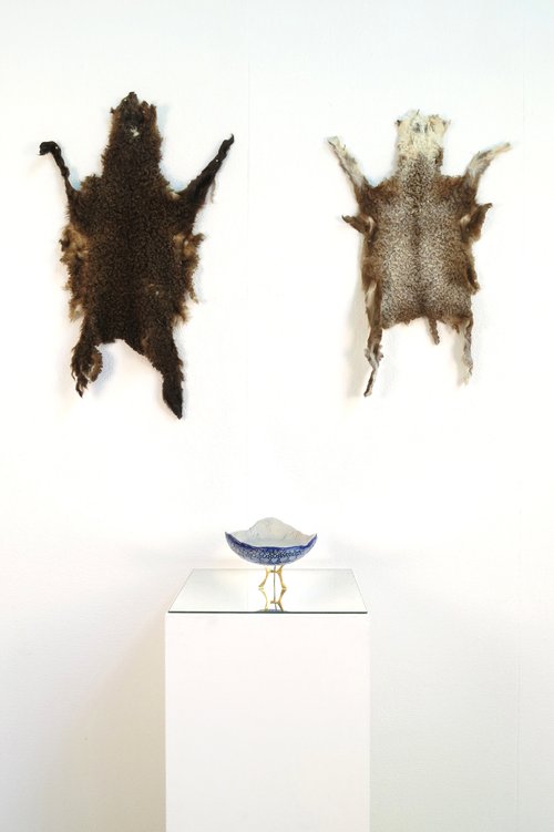 The context for the ritual space and so, forever borrows from Fludd’s idea of an immense dark beginning, but looks to the immanence of the cave, the well and the womb as iconography of the infinite. Installation, sculpture and drawings reference the symbolic mark-making of the ancients, reflect on the universal biological process of creation, and celebrate the transcendence of the spirit as it finds a home in a new body. These ideas are manifest in embodied metaphors of the hand, eye, umbilical cord, placenta and caul. This space is held to honor the two-fold initiation of the birthing and the birthed.